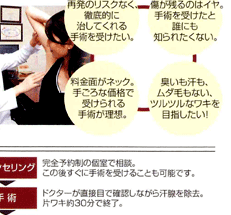 そのため、ワキガのご手術であれば片ワキ約2万円。ホクロであれば1つ約5,000円から治療できます。