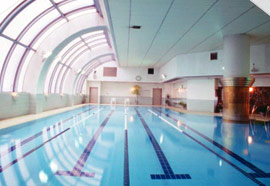 20m4コースの夏場はシェルターを開放し明るく開放感のあるプールです |