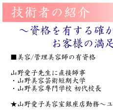 | 髪の長短で料金が変わりますので技術者にご相談下さい。遠赤スチーマーを使用しますので短時間です。 |
