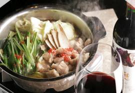 ぷりっぷりの国産牛の生もつを使用した博多の真髄「もつ鍋」です。