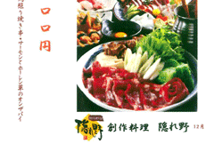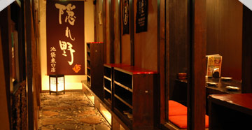 ジャズの流れる店内はすべて個室になっていて、3〜24人までの宴会にも対応している「隠れ野東口店」。女子お手洗いにはアメニティグッズが常備されており、女性でも心地よくお酒が楽しめるような心配りがされている。素材にもこだわった創作料理やおいしいお酒が手ごろな値段で味わえる、心もお腹も満足できる居酒屋だ。