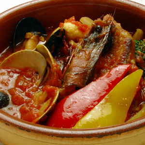 定番ペスカトーレ。トマトソースかガーリック&オリーブオイルのソースをお好みで。