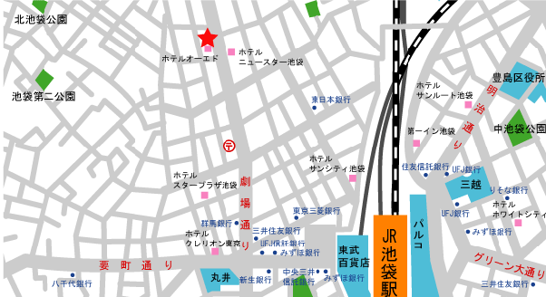 JR池袋駅北口より徒歩7分、東京メトロ池袋駅C6出口より徒歩5分、東武東上線池袋駅より徒歩7分