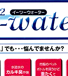 ◎イーツーウォーター・・・自分で作れる100%天然素材のやさしく、まろやかな、おいしい水。飲み水やお料理、洗い水や、洗髪、洗顔と生活の全てに使って下さい。
