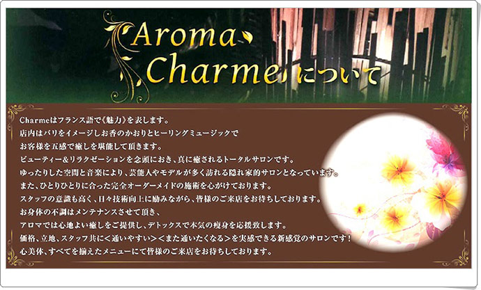 ※詳細はコチラからご確認ください>>>http://aroma-charme.jp/menu/08.php |