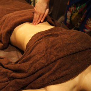 アロマオイルを使用して、オールハンドでお腹を刺激し、老廃物の流れをスムーズにして便秘改善に働きかけます。