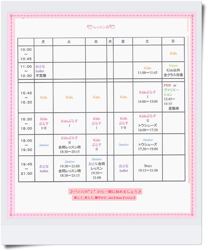 レッスンスケジュールによる |