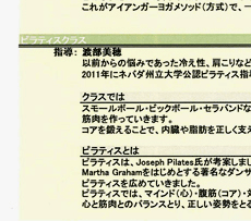 2012年4月からモダンダンス・キッズダンスクラスに加え、アイアンガーヨガとピラティスのクラスが新たに始まります!!
