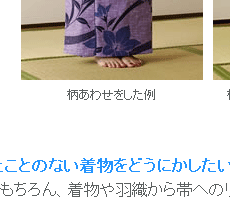 サイズ直しのご相談も受け付けます。まずは着物を持ってご来店下さい。着物から帯へのリメイクや、バッグ等へのリメイクの相談もお受けします!