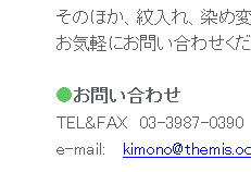 「もっと身近に着物を感じてもらいたい」と、仕立て工房が始めたショップです。仕立て屋の目で選んだ、リーズナブルでありながらも高品質な反物・小物を取り揃えております。着物と帯、小物の組み合わせから、仕立て工房だから出来るぴったりサイズのお仕立てや、コーディネイト、サイズ直し、リサイクルに至るまで、着物に関する事なら、疑問、質問、何でもご相談下さい。普段着の着物を探しに来てみませんか?新商品はブログにて随時ご紹介していきますので、こちらもぜひチェックしてみて下さい。