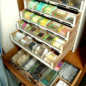 針や糸、基本の道具はもちろん、物差し(センチ、鯨尺)、寝間着やモスリン、浴衣の反物も通年扱います!