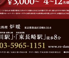 池袋から至近の高級住宅地、千川(東長崎)にある隠れ家的本格欧風家庭料理のお店「炉暖」です。フランス料理を中心とした欧風家庭料理と共に、千川(東長崎)では珍しいフランス産ワインをグラスで常時7種類ご用意!フランスでの調理経験を持つオーナーシェフが、厳選した旬の食材をタイムリーにお召し上がり頂けるメニューを、随時20種類以上ご用意しております。生地からこだわった自家製の塩ピザや、希少な門崎牛ステーキ、フランスで最もポピュラーなニース風サラダなどが大好評!お仕事帰り、気のあった仲間同士、家族や恋人…ワインを飲みながら気軽にくつろぎたい…そんな皆様の時間を炉暖は大切にします。
