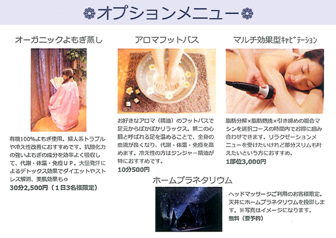1F男女兼用/2F&3F女性専用 着替え 無料/指名料 無料 |
