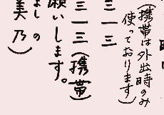 注):不在時は留守番電話にお名前と電話番号を入れていただければ、こちらからお電話致します。