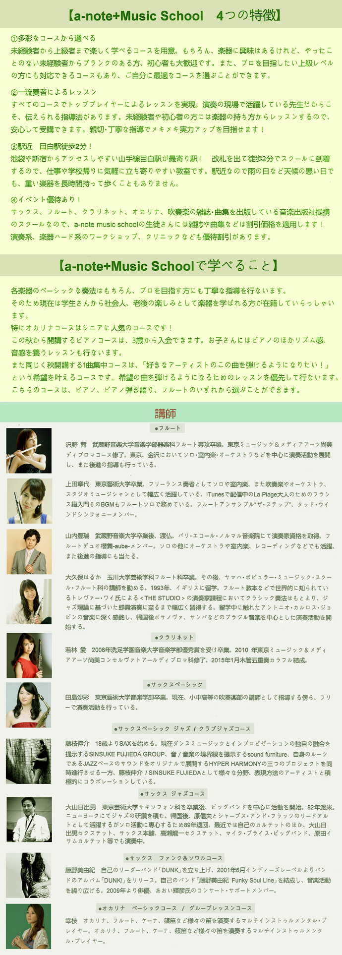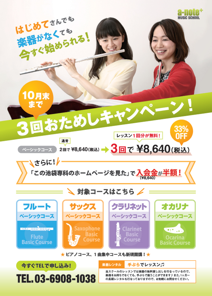 ・フルート ボサノヴァコース 12,960円(45分/月2回) 15,120円(60分/月2回)